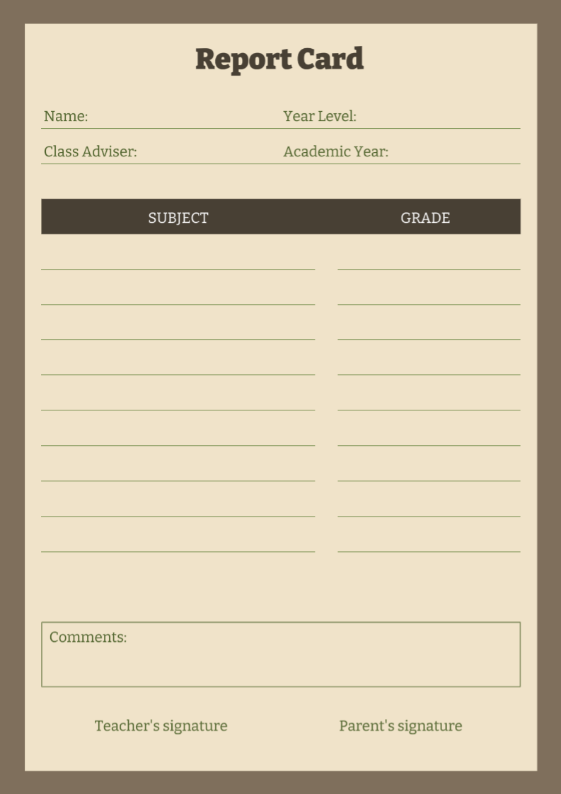 Non-marketing Report Card, brown report card