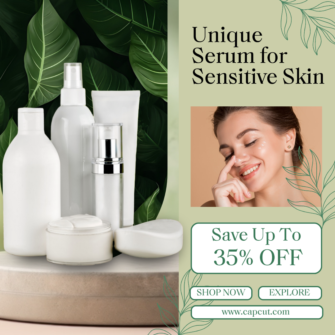 Beauty and Personal Care,Unique Serum for Sensitive Skin, template for Instagram post design