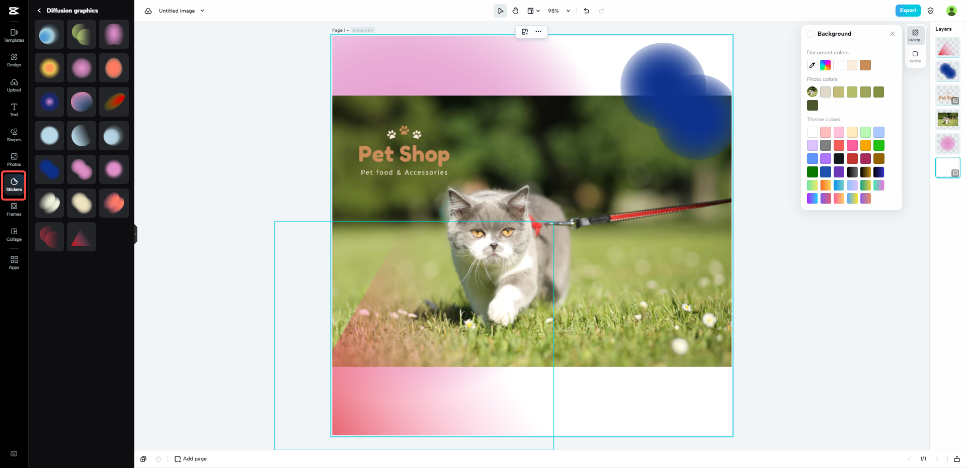 Neben Filtern können Sie mit CapCut auch Aufkleber Aufkleber in Ihre Bilder einbauen. Diese Funktion ist perfekt, um die Betrachter zu begeistern. Mit anpassbaren Voreinstellungen, die verschiedene Stile, Farben und andere Einstellungen bieten, mit denen Sie fesselnde Dinge erstellen können.