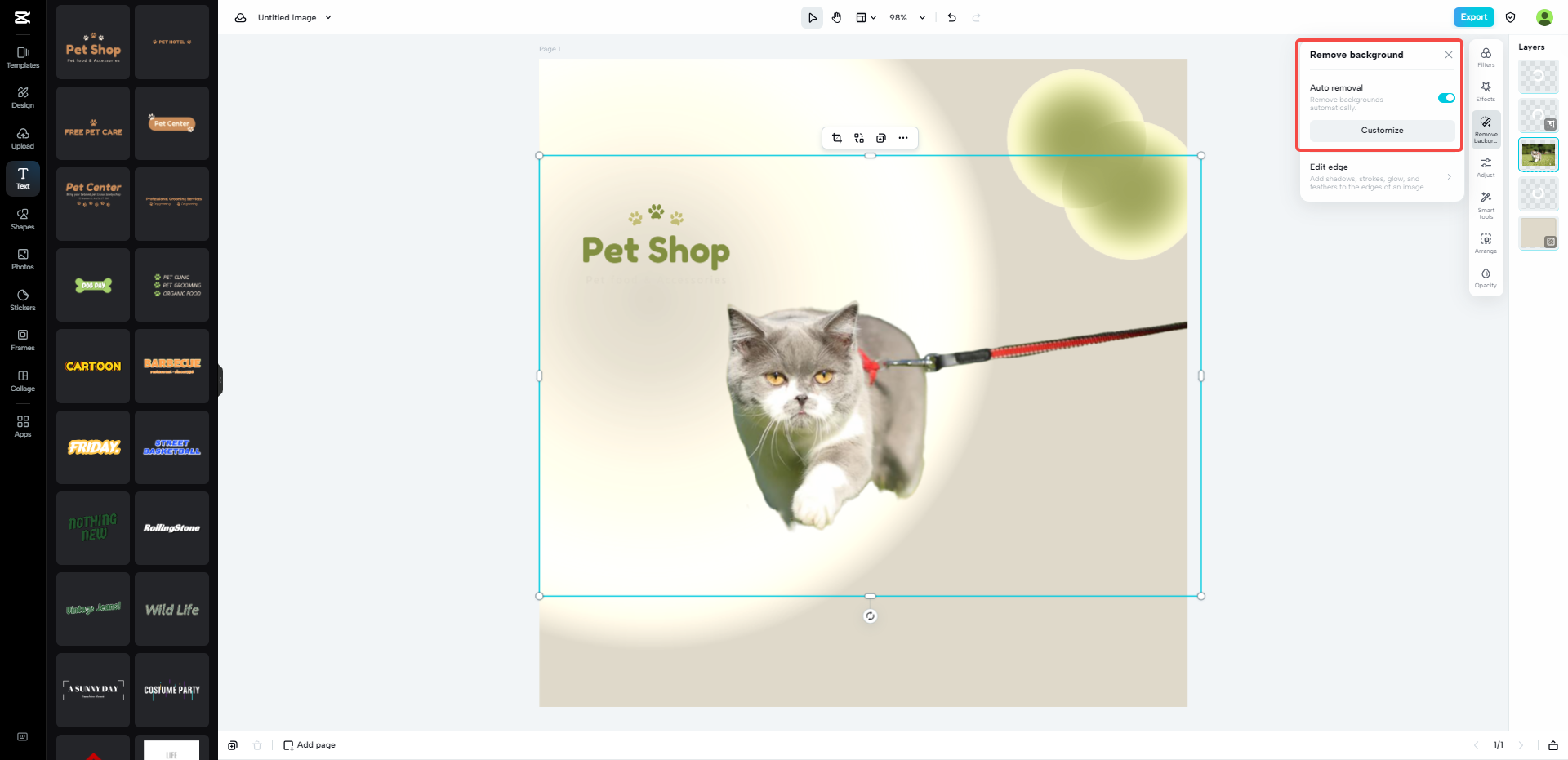 Egal, ob Sie einen transparenten Hintergrund haben oder ihn durch ein anderes Bild oder eine andere Farbe ersetzen möchten, CapCut hat alles für Sie. Die fortschrittliche KI-Technologie funktioniert wie von Zauberhand, um den Hintergrund genau zu erkennen und zu entfernen und das Hauptmotiv nahtlos zu erhalten.