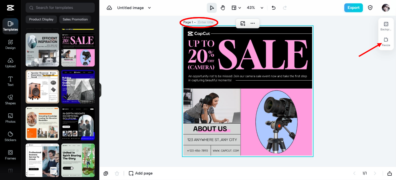 Sie können die Größe von JPEG-Dateien ganz einfach mit dem CapCut Online-Bildeditor ändern. Sie müssen sich nur anmelden, Ihr Bild hochladen und auf die Option Größenänderung klicken.