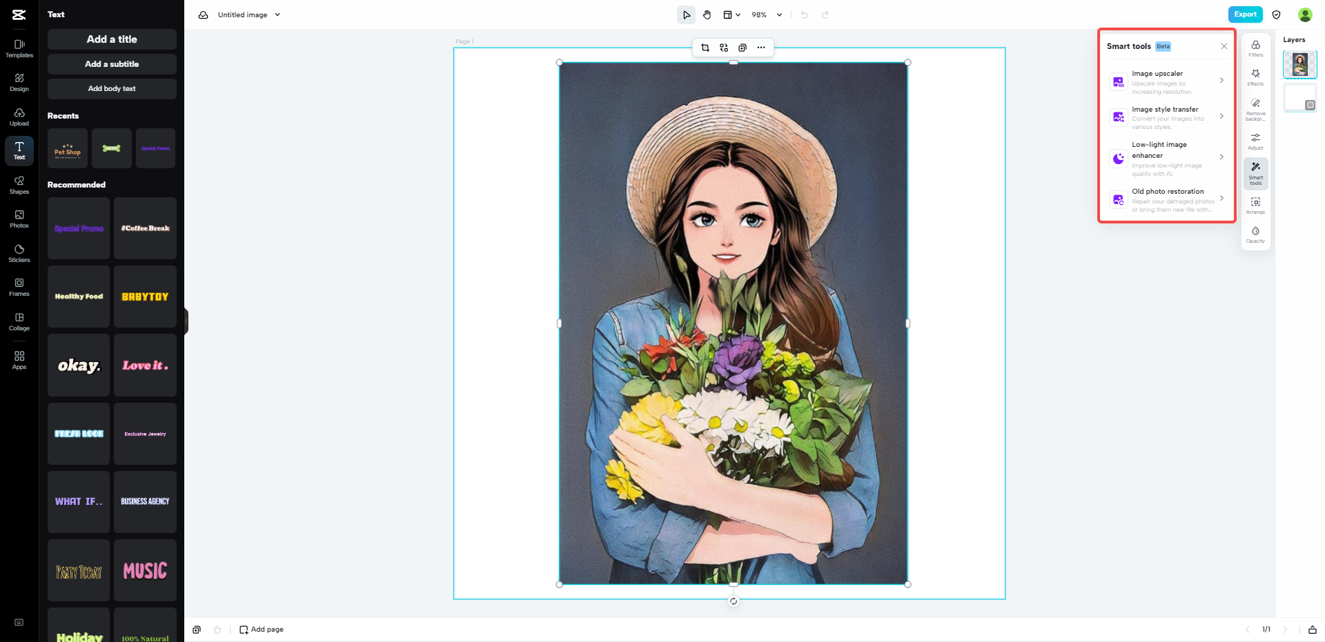 Ja! Es ist möglich, die Größe von JPEG ohne Qualitätsverlust zu ändern, indem Sie die Größe Ihres Bildes mit dem CapCut Online-Fotoeditor ändern. Dabei bleibt nicht nur die ursprüngliche Bildqualität erhalten, sondern Sie können Ihr Bild auch vergrößern und es noch besser aussehen lassen.