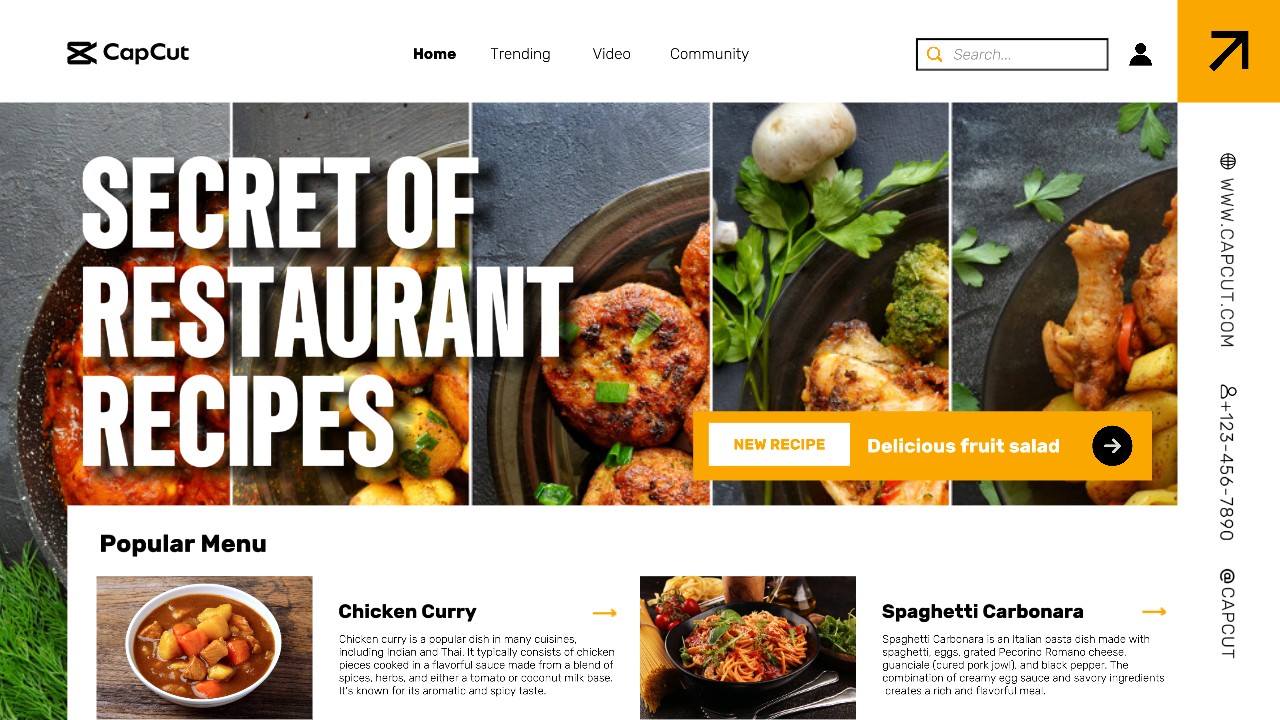 White Modern Food Recipe Menu Website