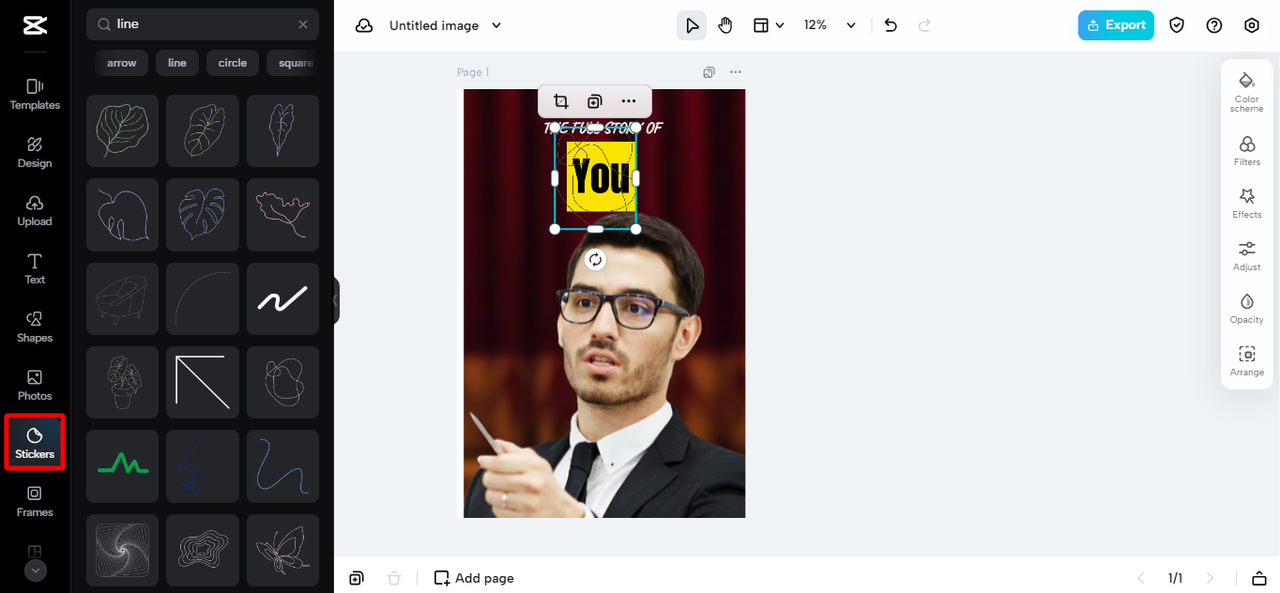 - Agrega formas y pegatinas