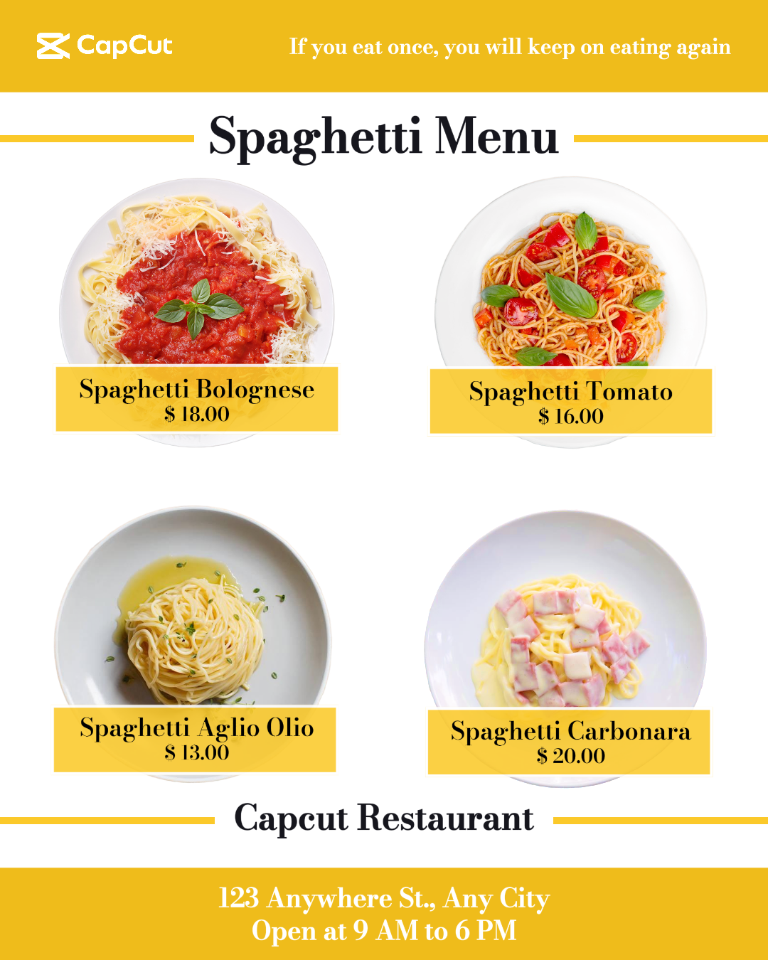 Instagram Post Spaghetti Menu