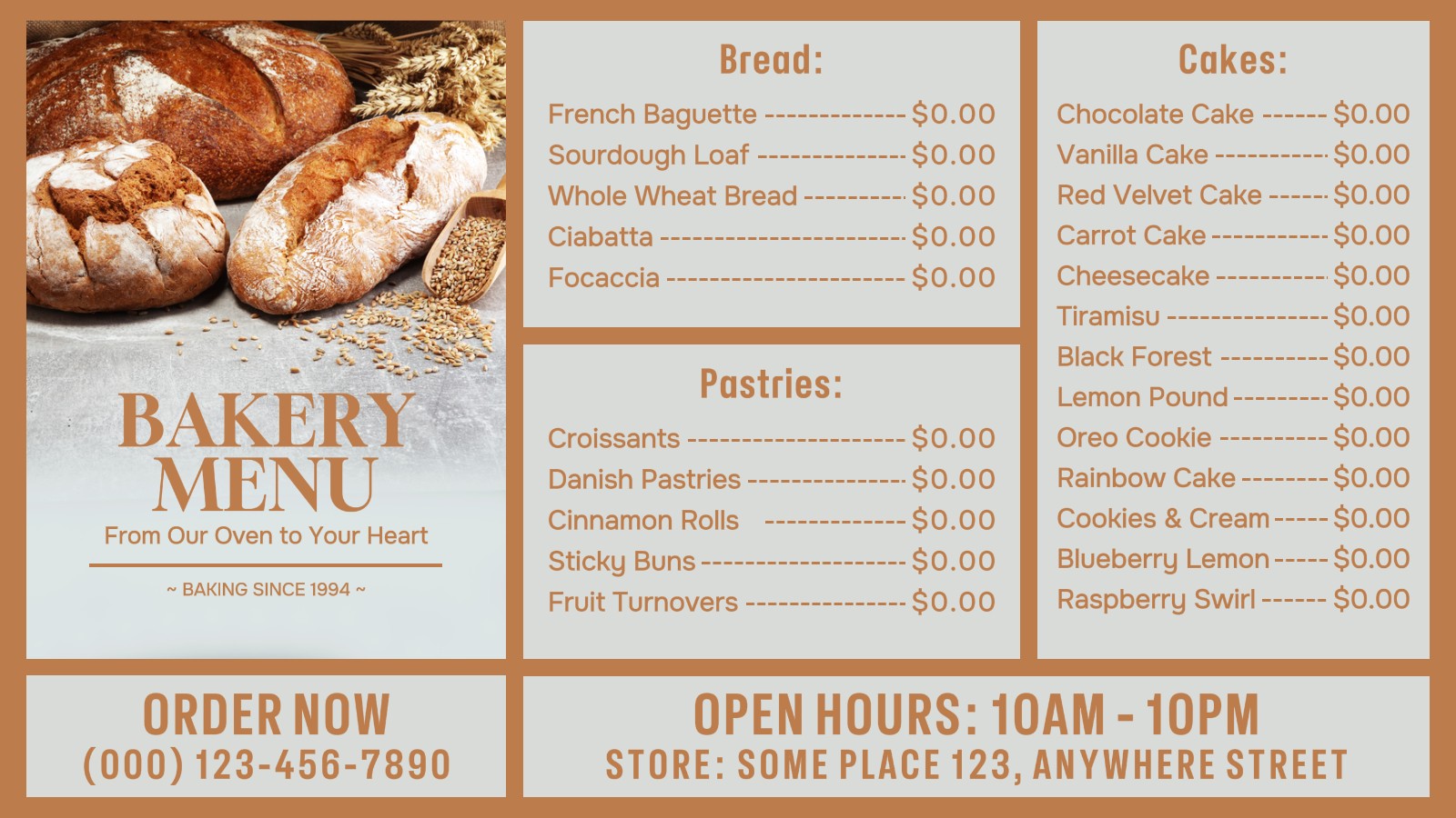 Food & Beverage Bakery Menu