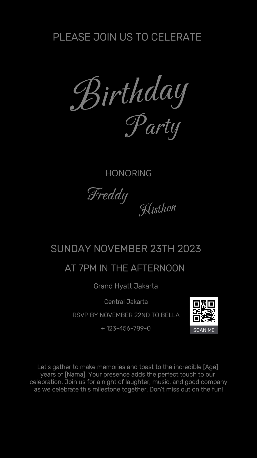 Non-Marketing Invitation Birthday Full Black