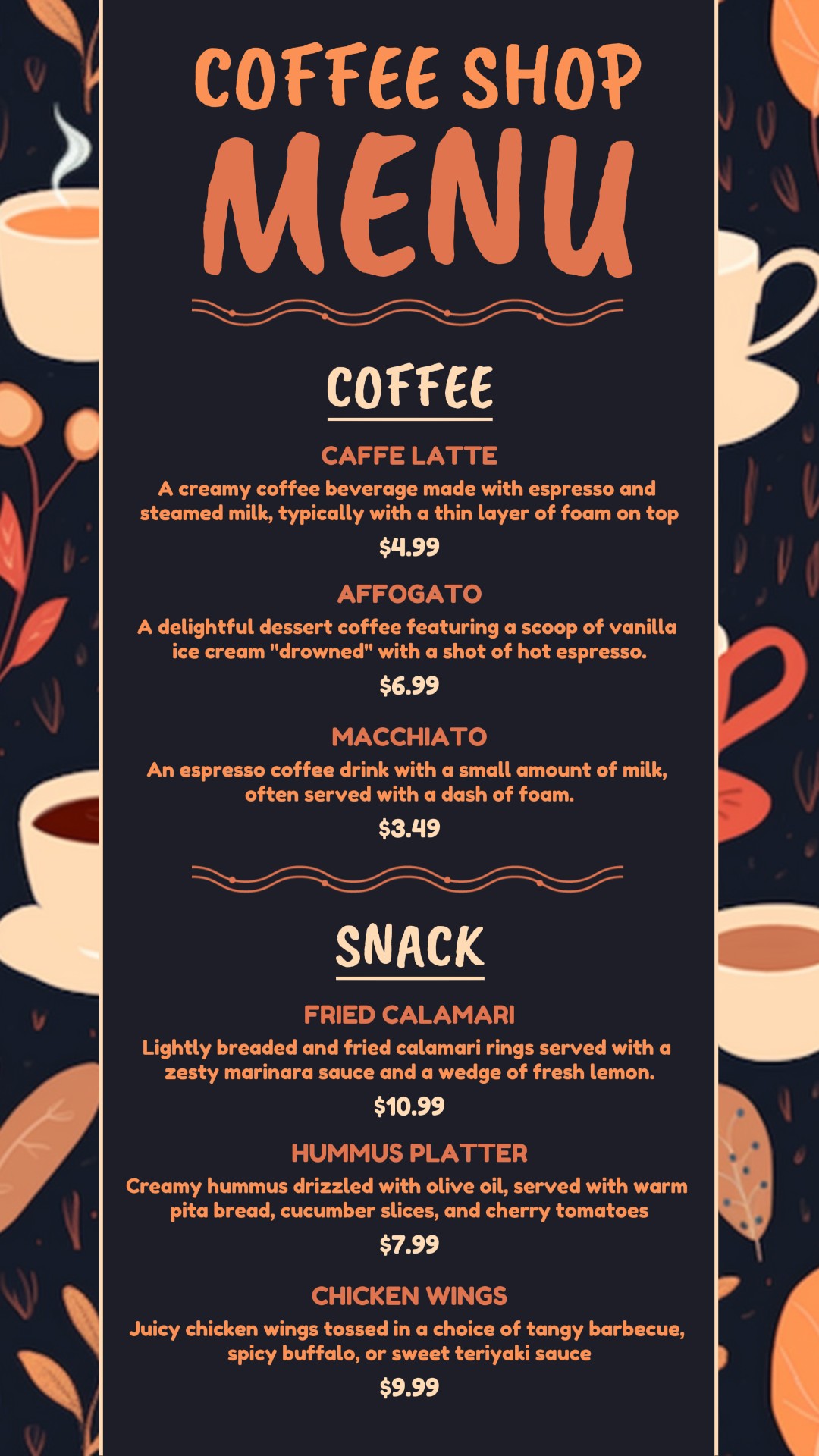 Simple Coffee Menu for Instagram Stories