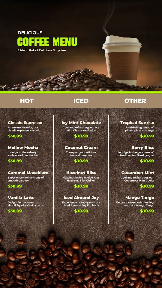 Modern Coffee Menu for Instagram Story