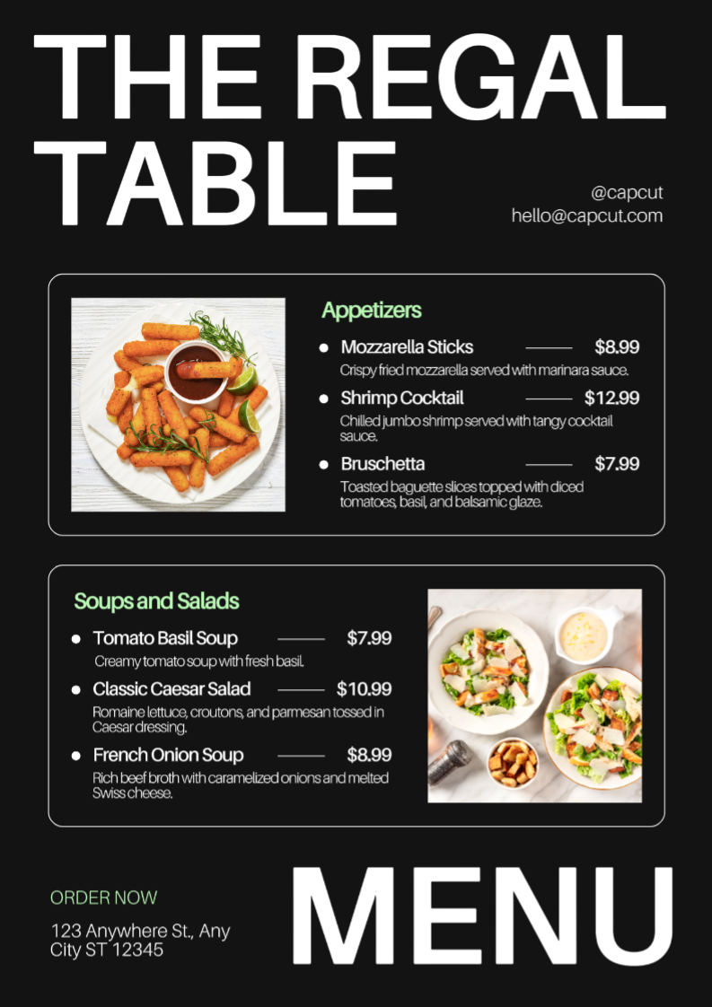 Restaurant Menu Black Minimalist