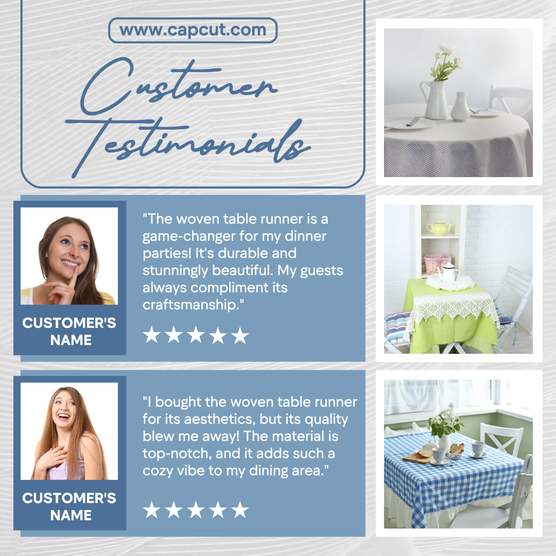 Minimalist blue template design for Woven Table Runner testimonials for Instagram post business