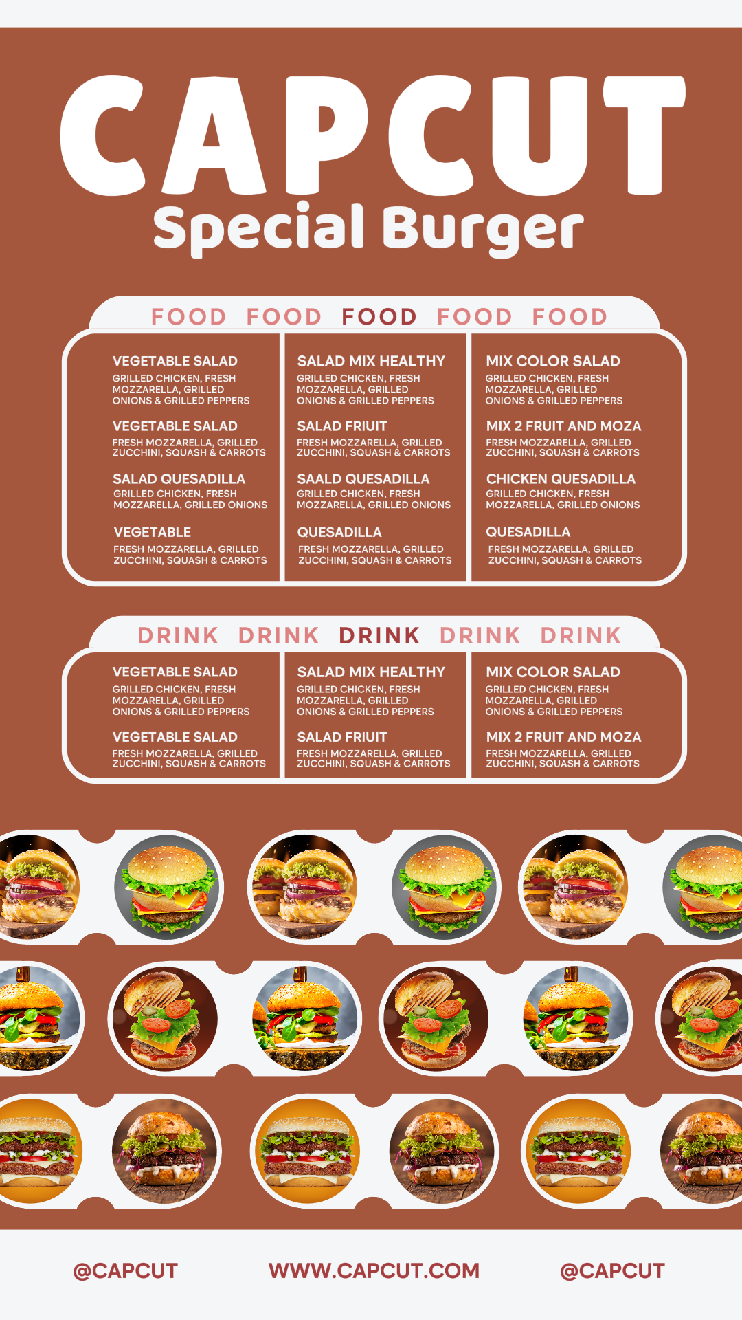 food and beverage sales promotion menu post Burn style