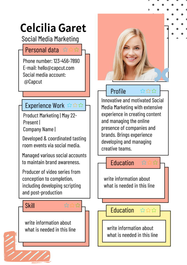 Simple and colorful style resume for marketing job seekers