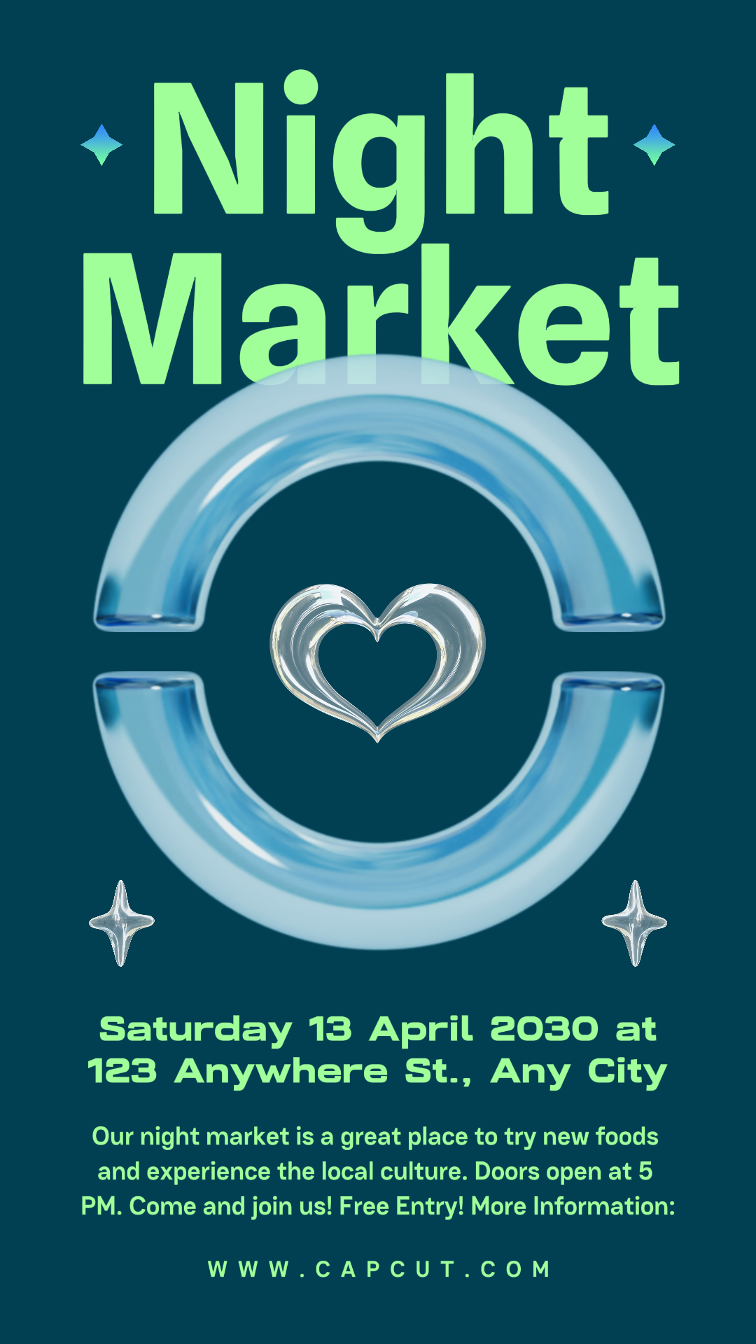 Dark Blue Teal Modern Night Market Instagram Story