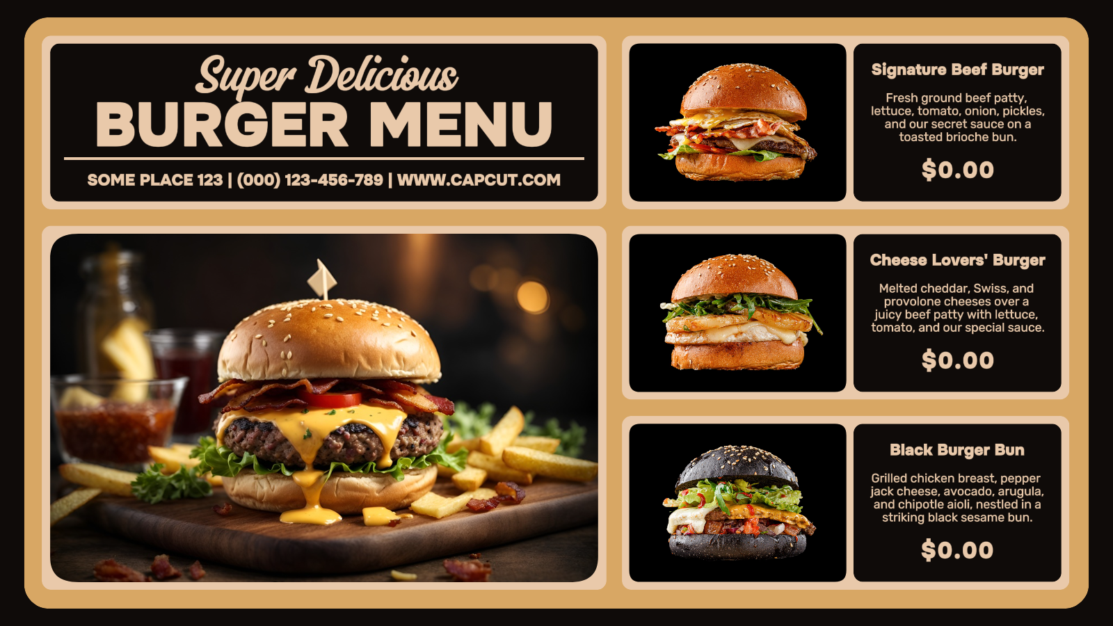 Super Delicious Burger Menu