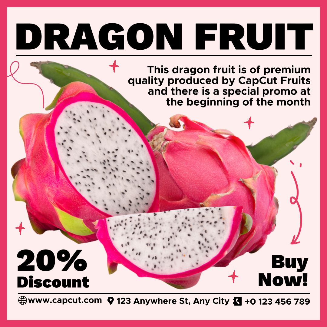 Dragon Fruit Pomotion Instagram Post White Pink Minimalist