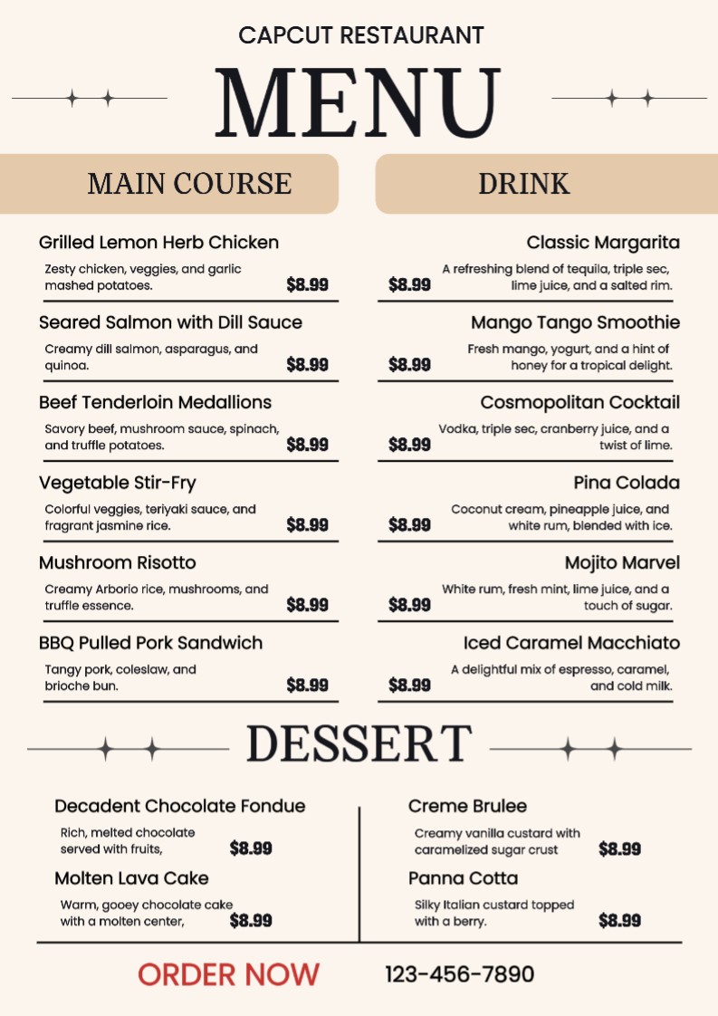 Beverage Menu List Menu