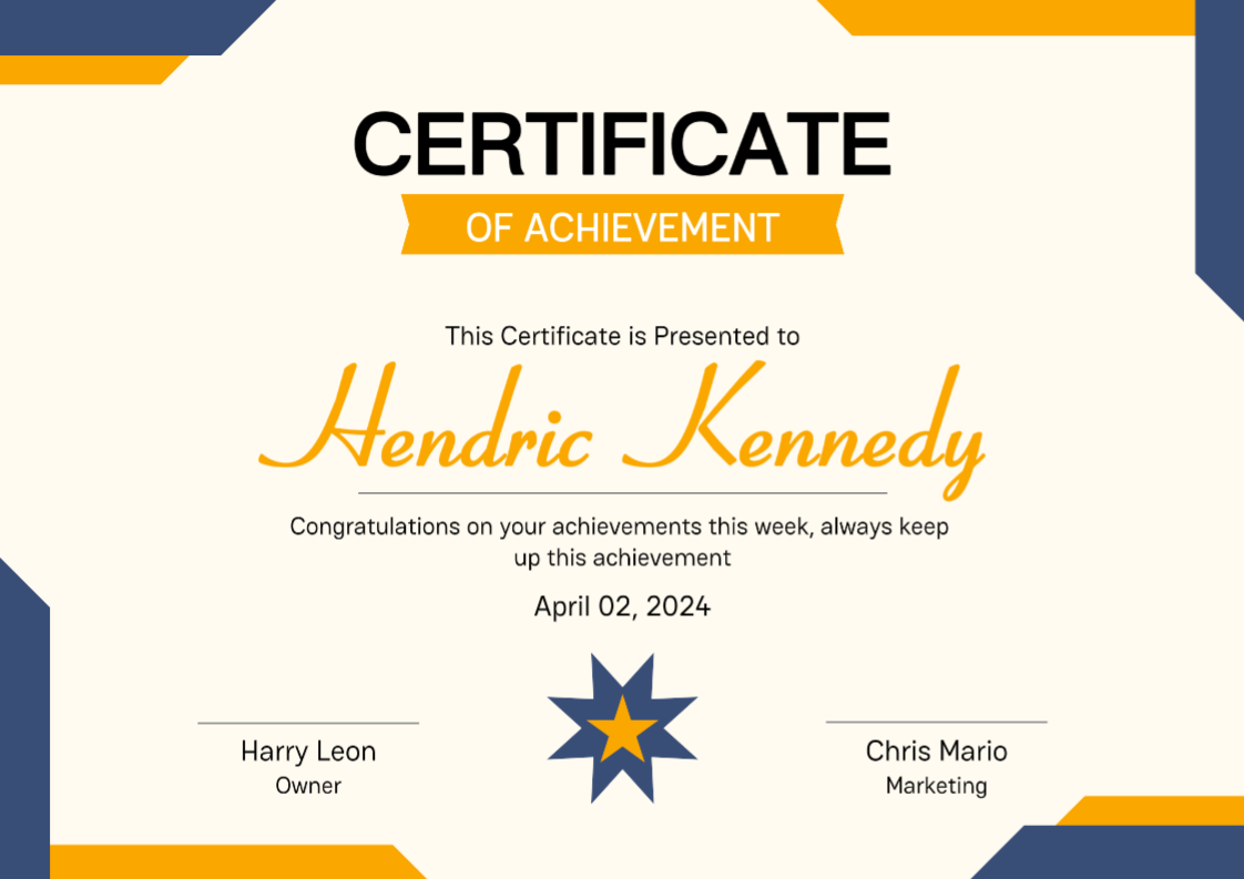 Non-Marketing Certificate Orange Blue Modern