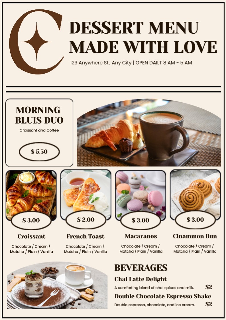 Food & Beverage Dessert Menu Special