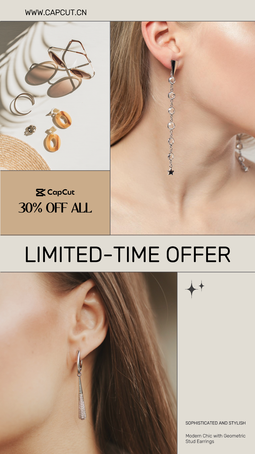 Diamond Earrings Gold Promotion Facebook Post Cream Minimalist