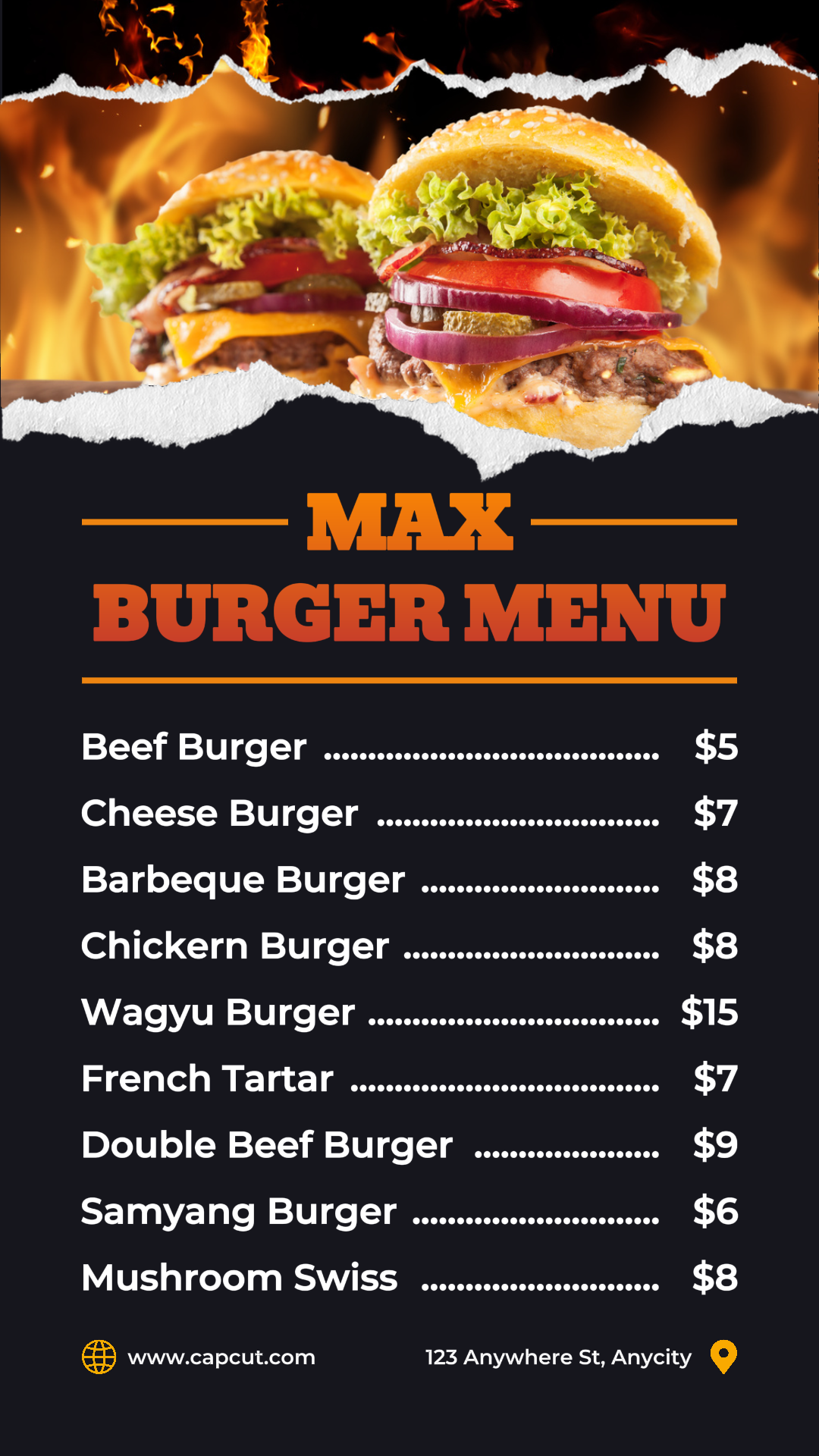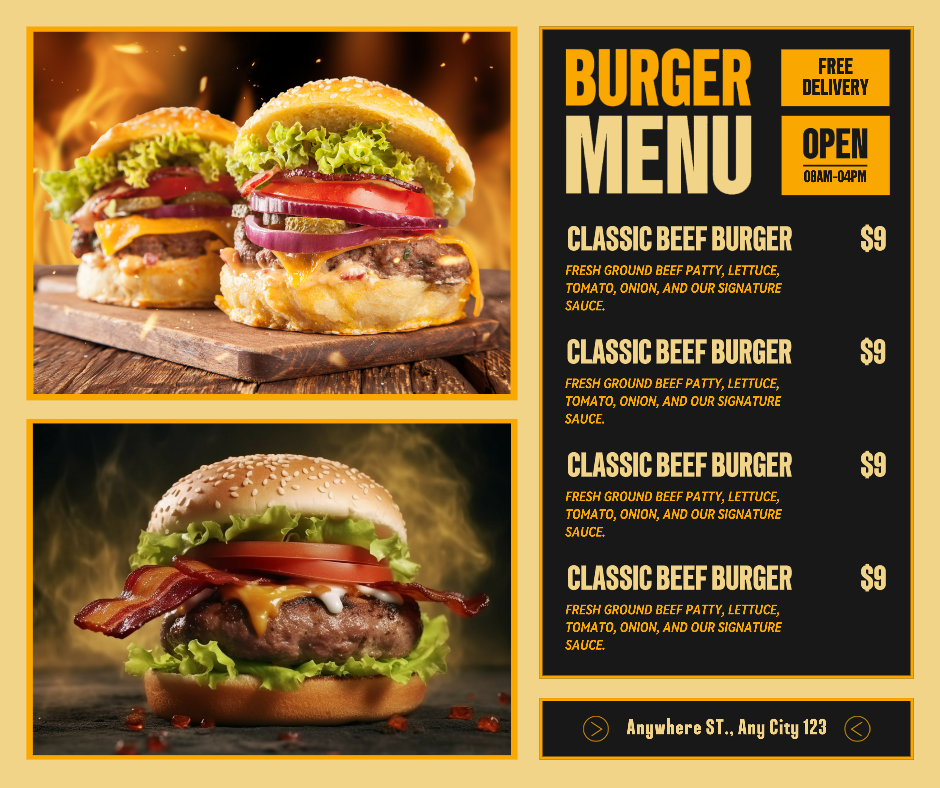 Food&Beverage Burgers Menu