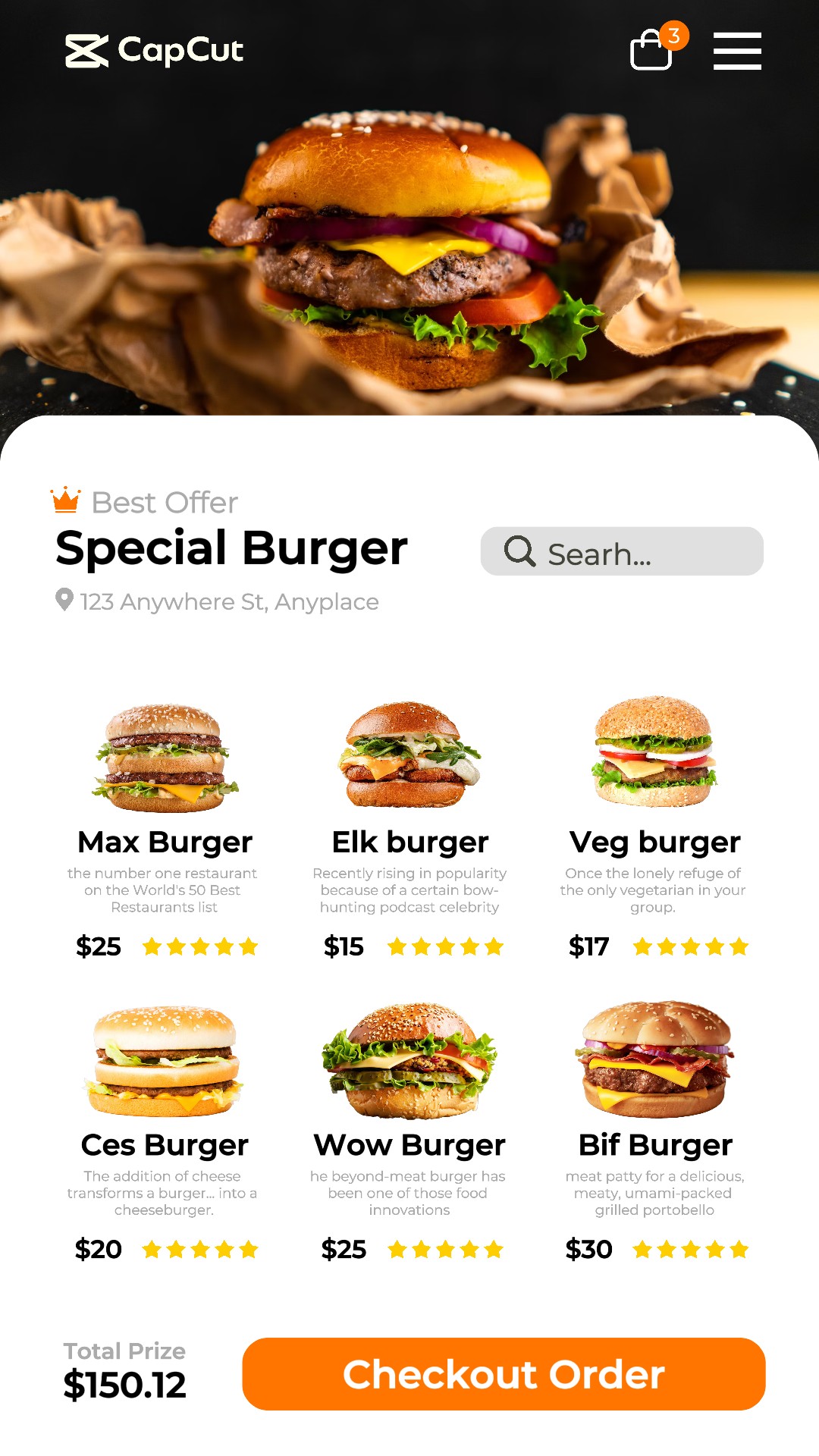 Hamburger Burger Promotion Application Menu