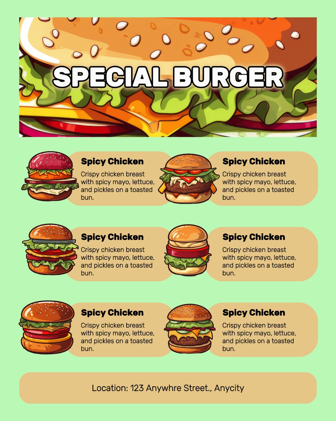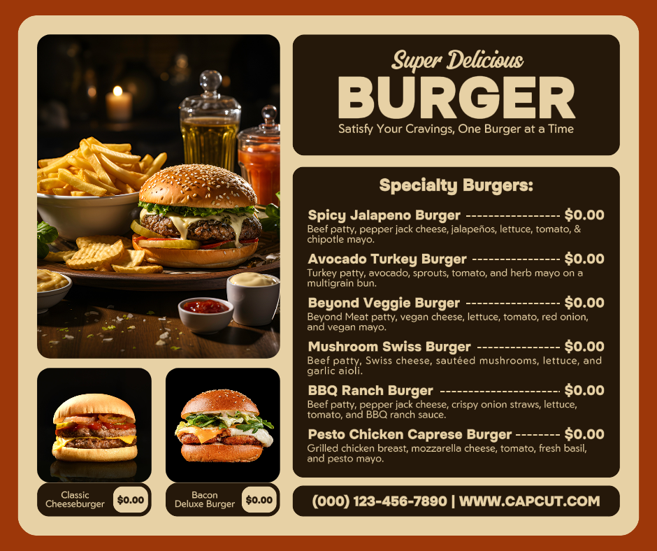 Special Burger Menu
