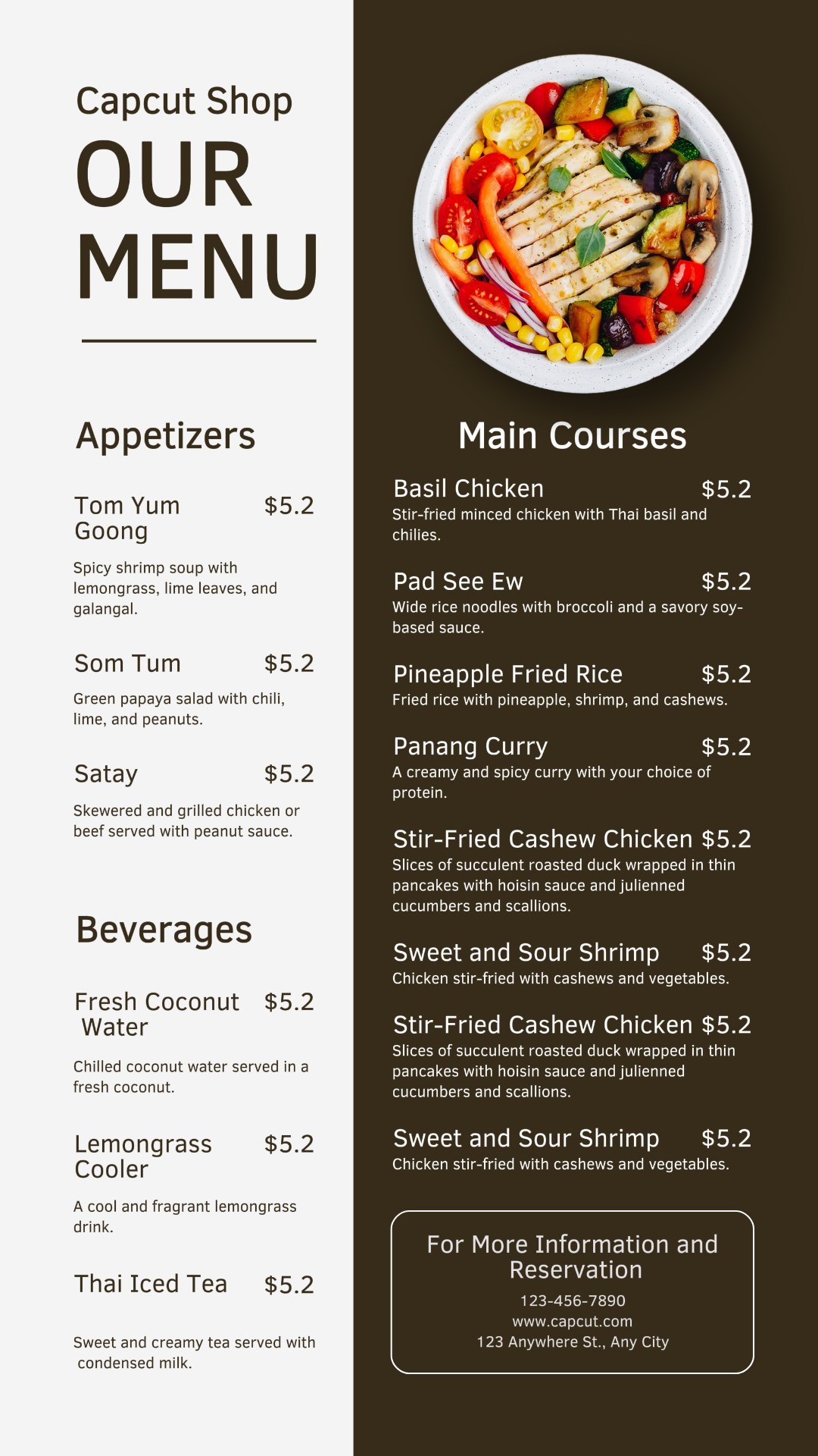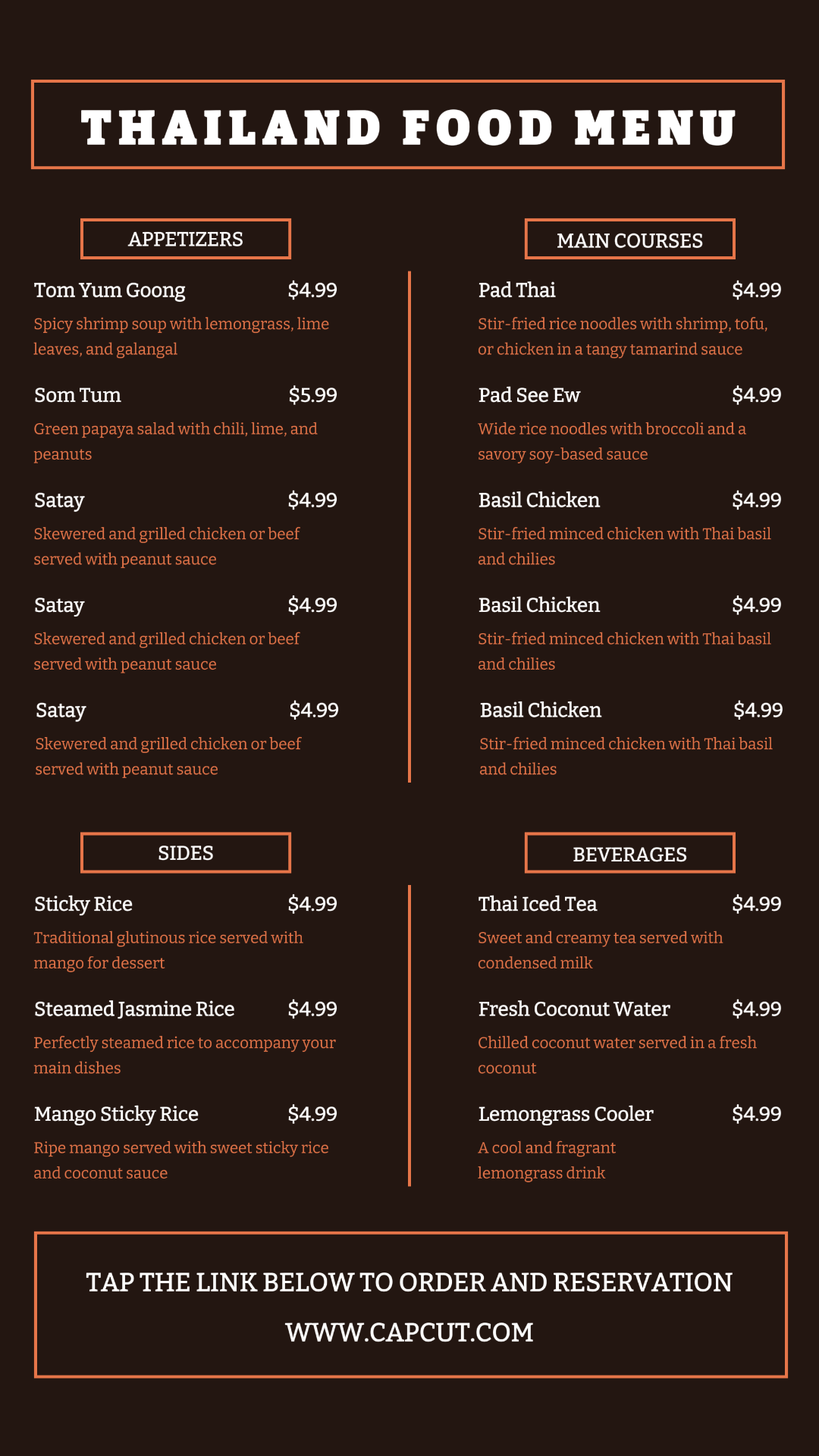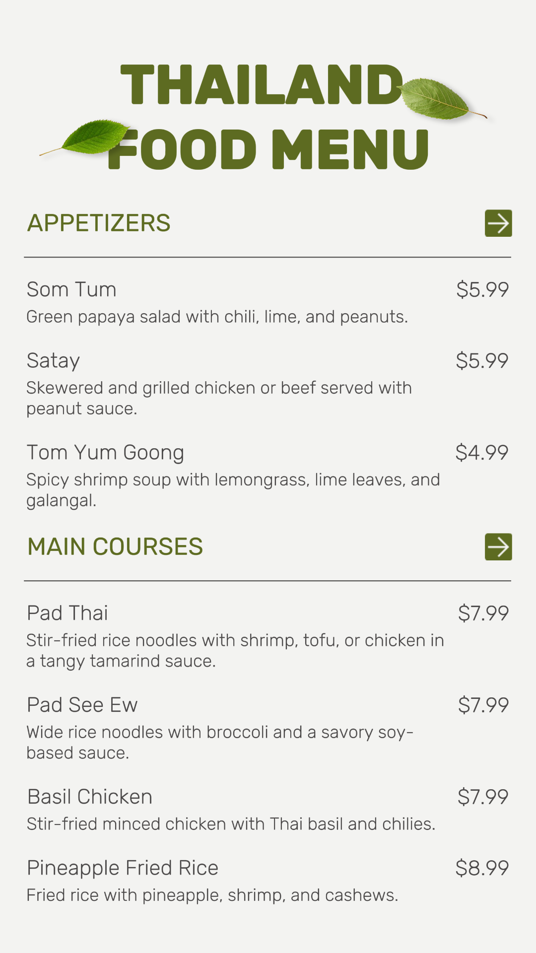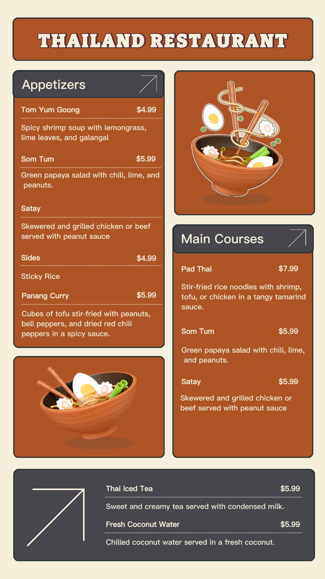 Food & Beverage Thailand Restaurant Menu
