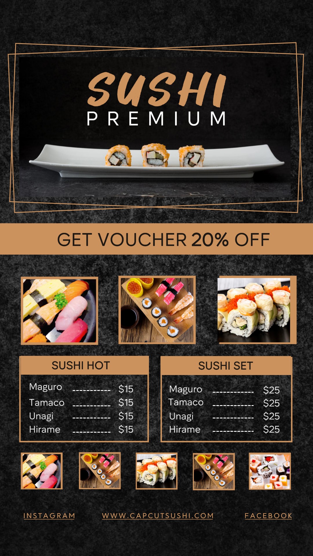 Premium Sushi sales promotion Instagram Story dark layout