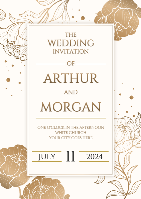 Invitation Wedding hand drawn golden
