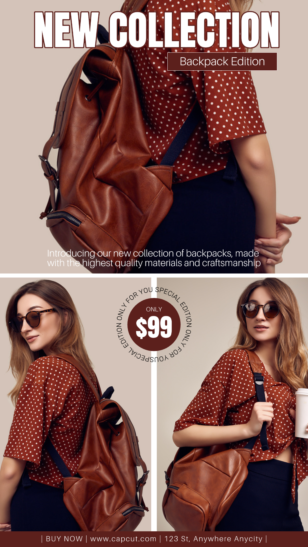 Maroon Women Backpack Promotion Instagram Story