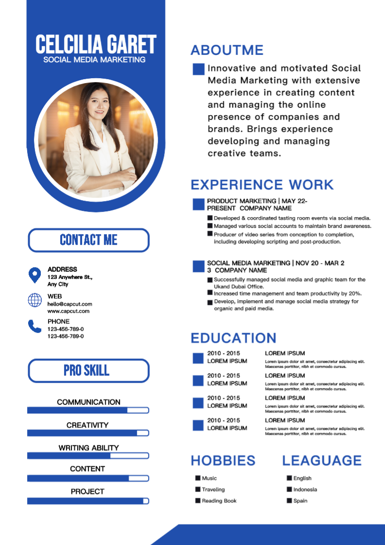 Non Marketing Resume Blue Minimalist