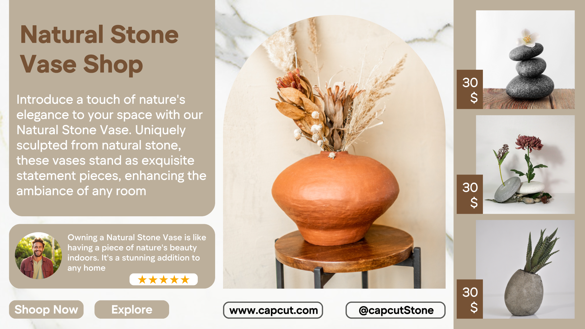 Minimalist template design for natural stone vase decoration business for business promotion needs