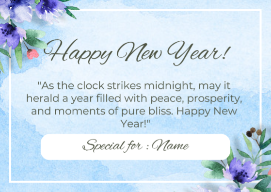 Non-marketing, Personalized Card, Watercolor flowers Happy New Year