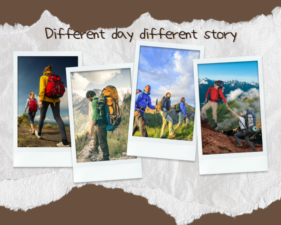 Non-marketing photo collage torn paper brown different day different story