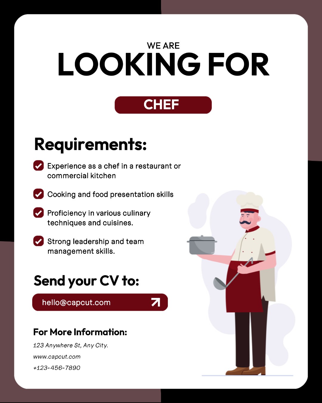 Job Vacancy For Chef Instagram Portrait