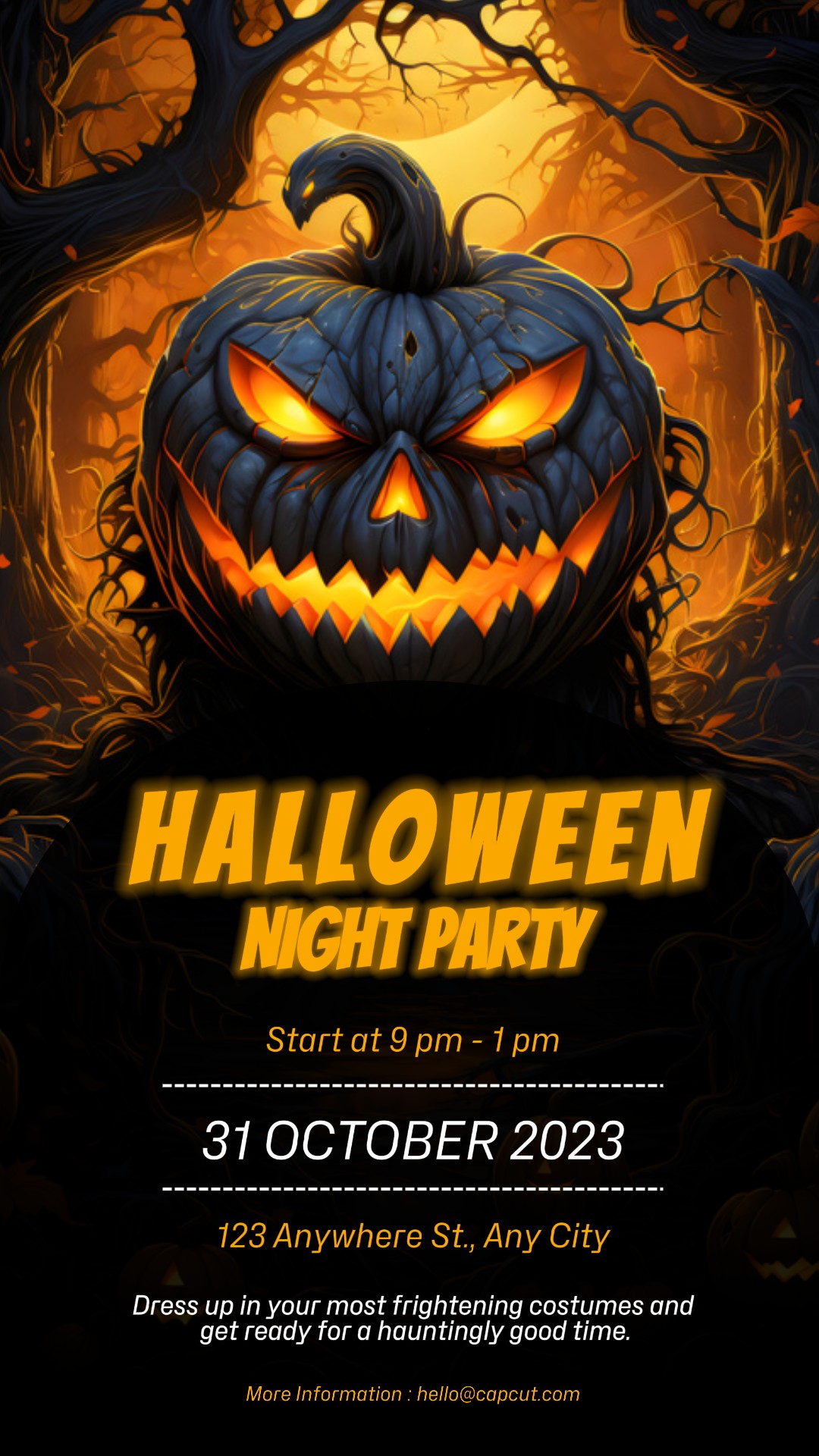 Halloween Night Party Invitation Instagram Post Yellow Pumpkin