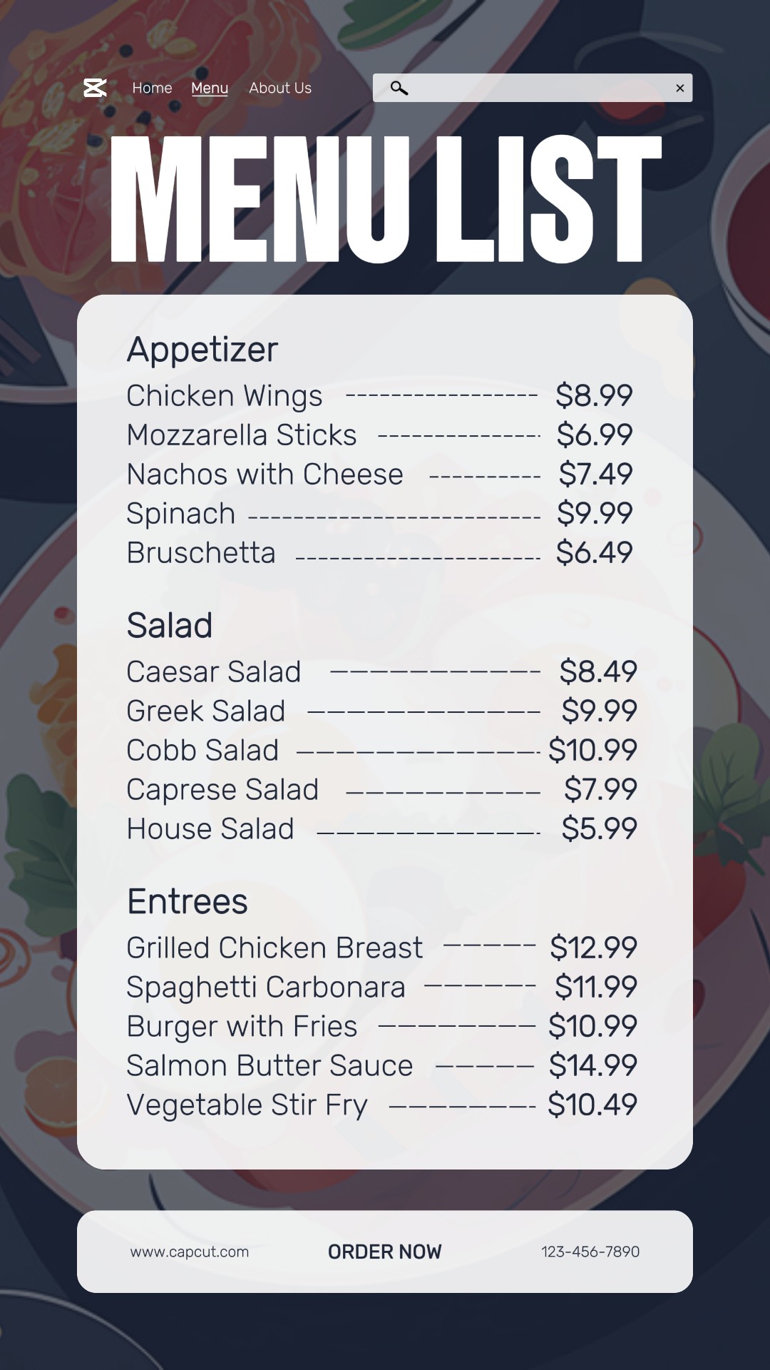 Food Menu List Menu