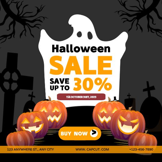 Black Simple Ghost and Pumkin Halloween Sale instagram Post