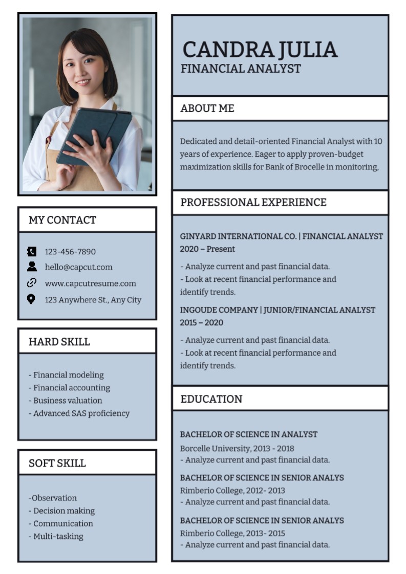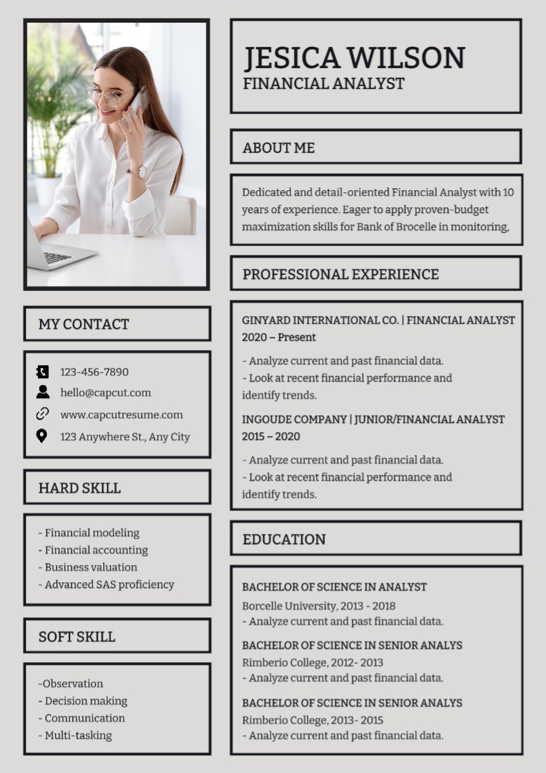 Busines Resume Financial Analyst Modern