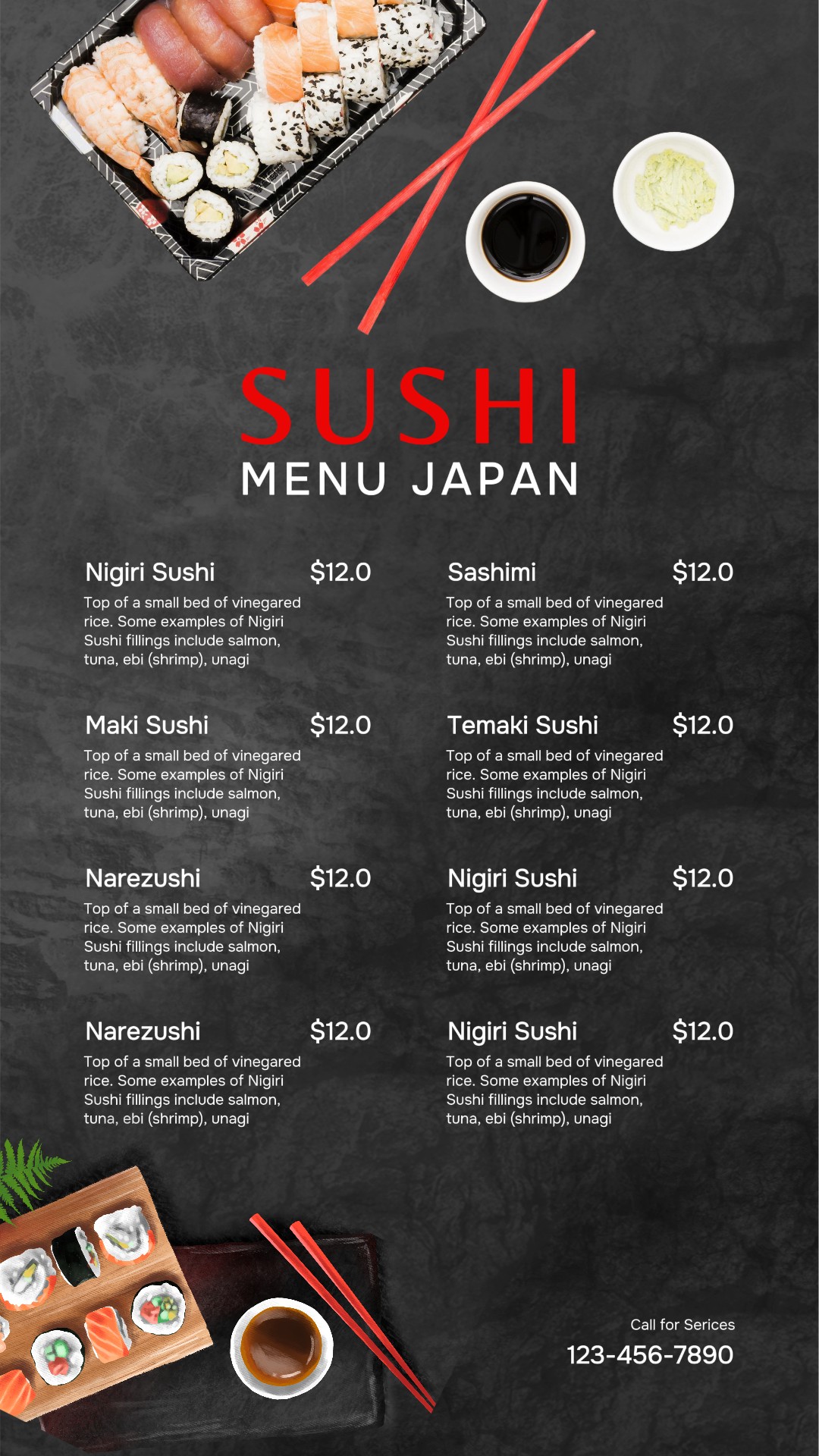 Food and Beverage Sushi Menu