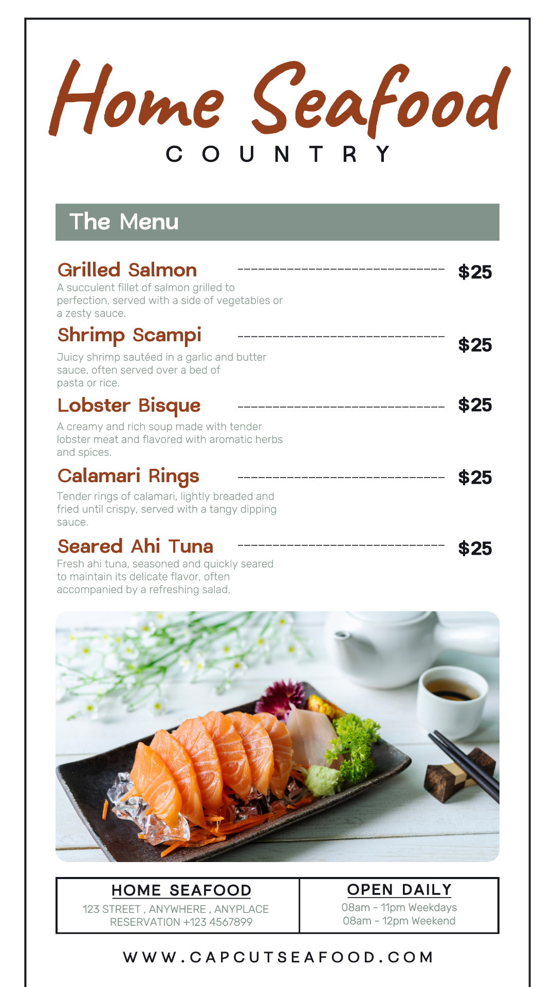 Food and Beverage Seafood Menu
