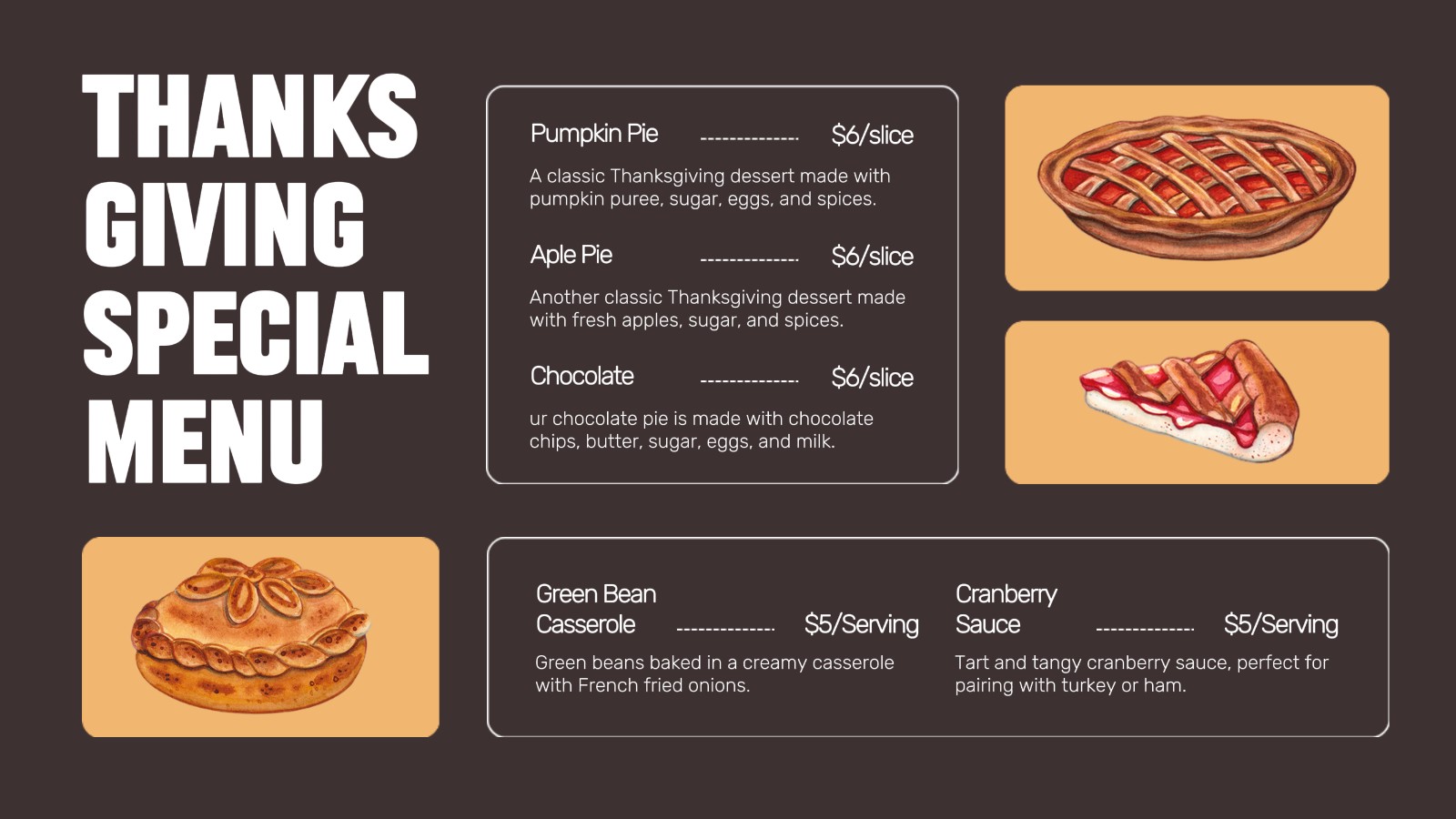 Thanks Giving Special Menu