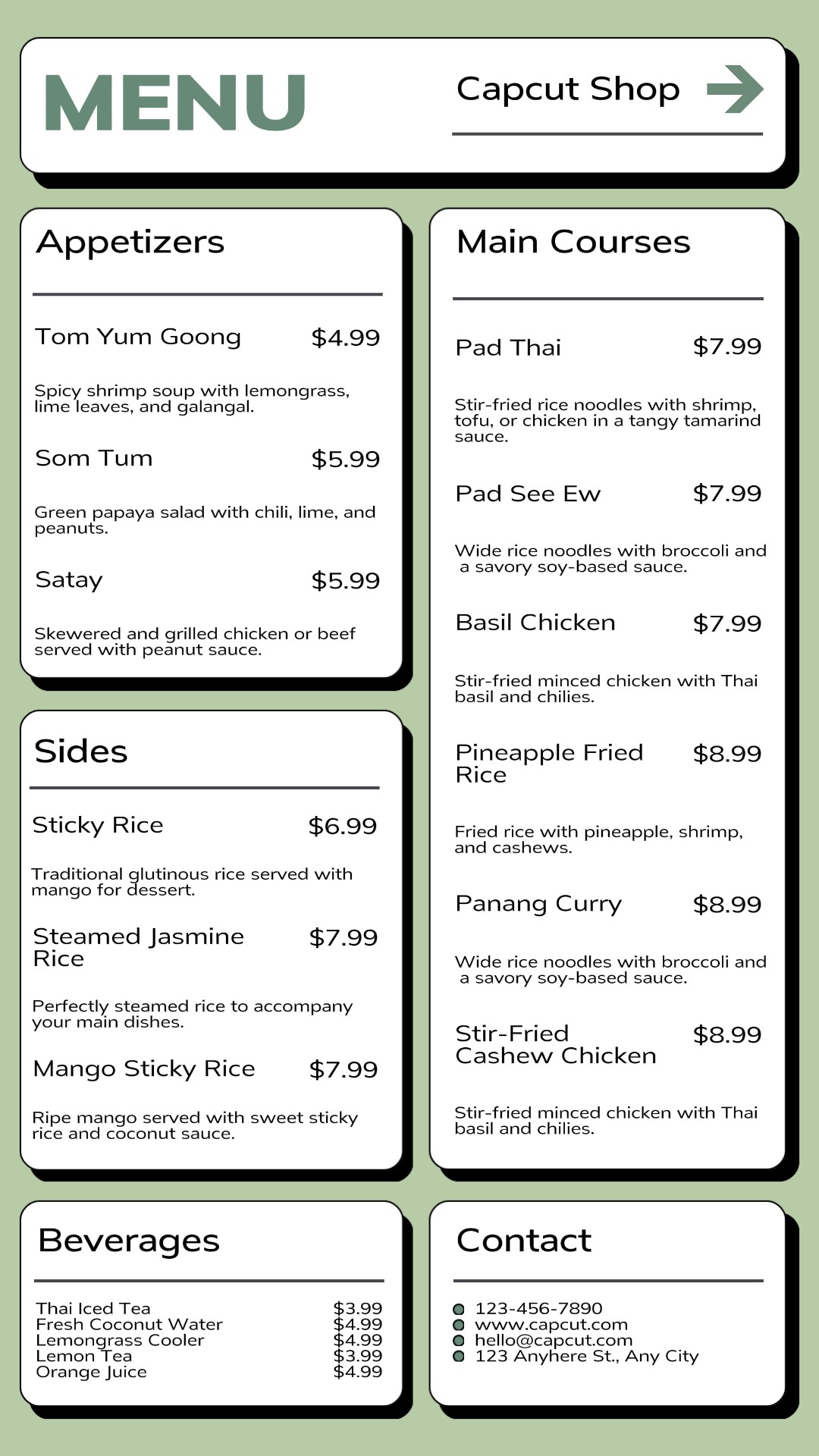 Food & Beverage Thailand Restaurant Menu