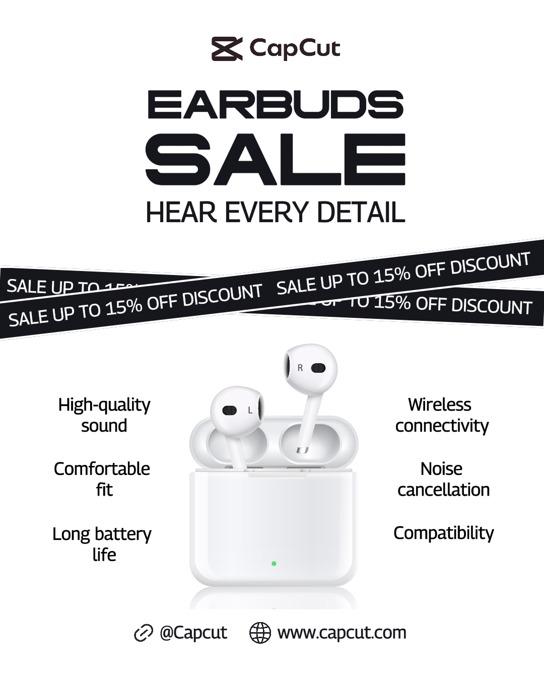 Electronic Earbuds Sale Instagram Portrait Black White Minimalist
