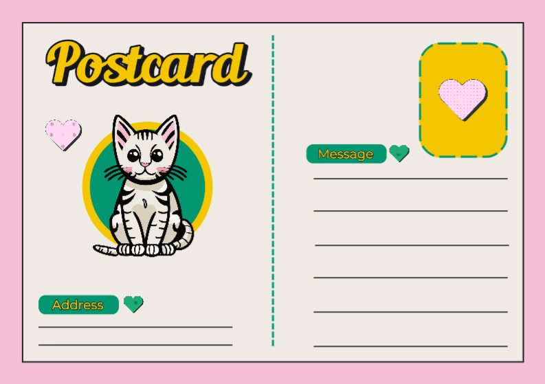 Non-Marketing Postcard Pet Pink Yellow Green