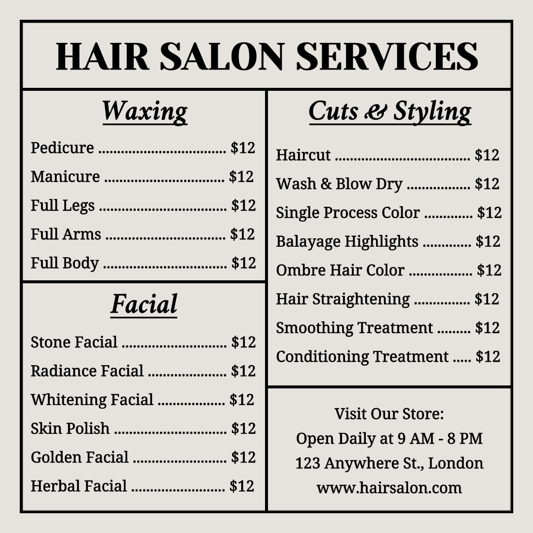 Hair Salon Pricelist