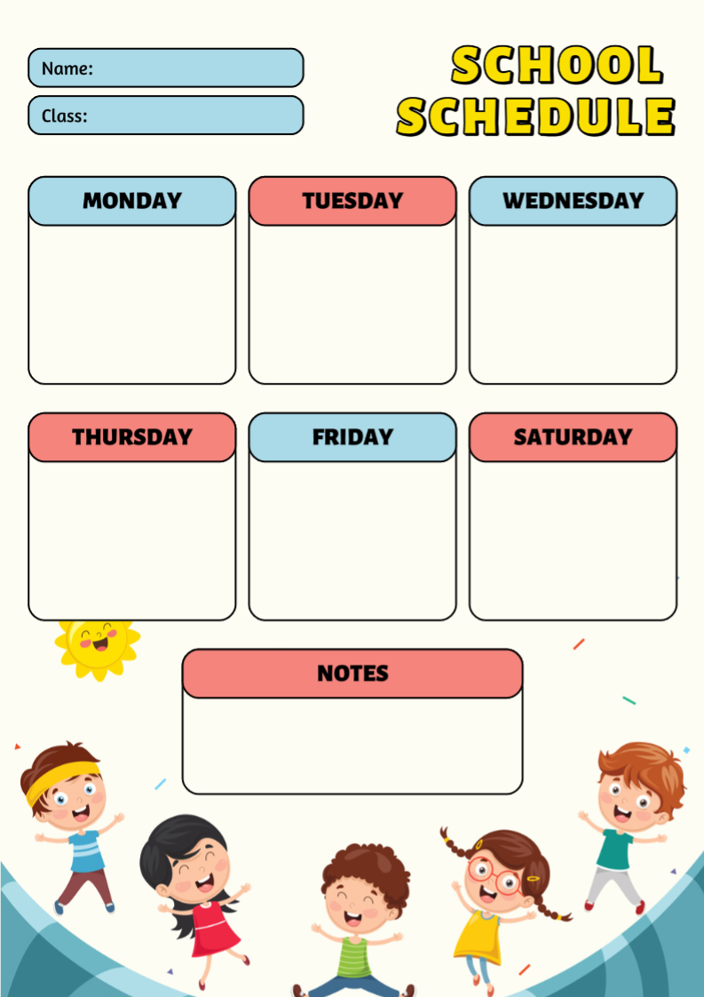 Non-marketing School timetable schedule cute style