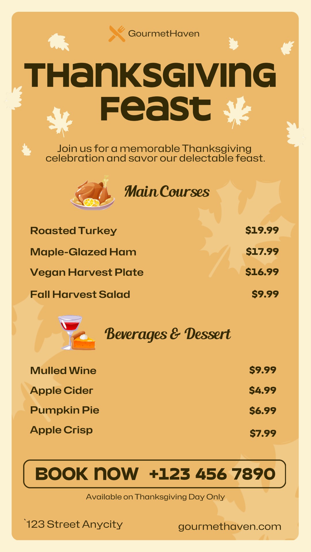 Thanksgiving Day Food and Beverage Menu