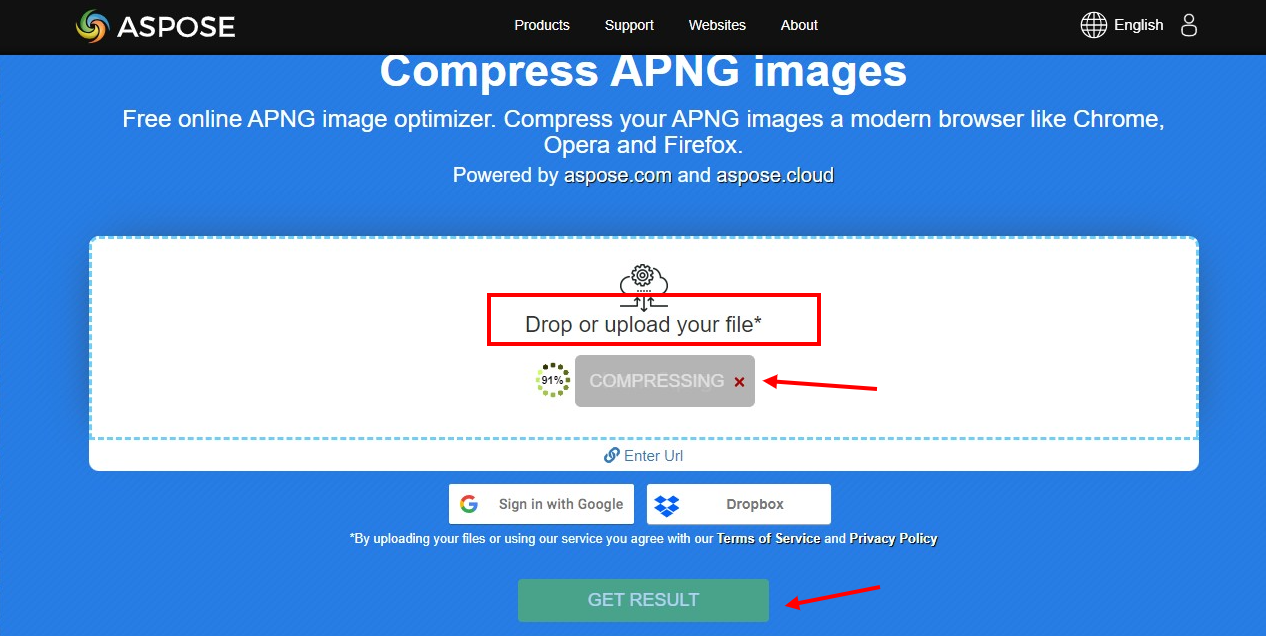 Devi selezionare un compressore APNG online affidabile per i tuoi file e qui ti suggeriamo di usare ASPOSE per una compressione ottimizzata.